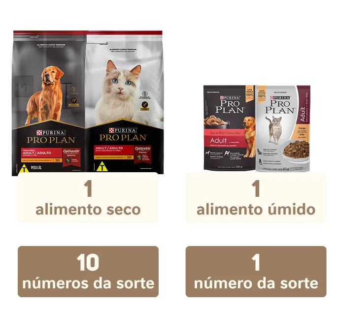 Sim! Na compra de produtos participantes na categoria “alimentos secos”, o consumidor receberá 10 números da sorte para cada produto dentro dessa categoria.